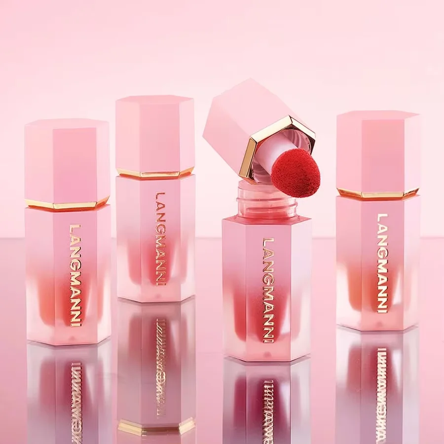 Líquido blush em pó de cor suave de 3 cores, pó transparente e combinação de cores? Vem com uma cabeça de escova de esponja,